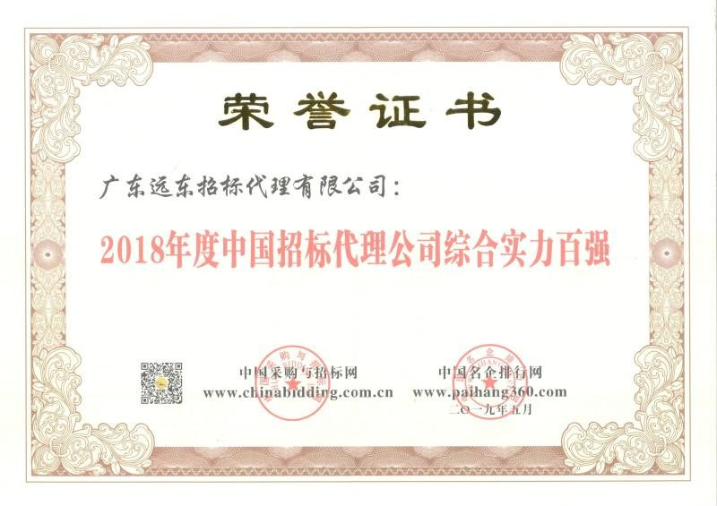 2018年度中國招標(biāo)代理公司綜合實力百強